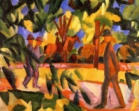 マッケ 遊歩道で乗馬する人と散歩する人ジクレーキャンバス複製画 額装品